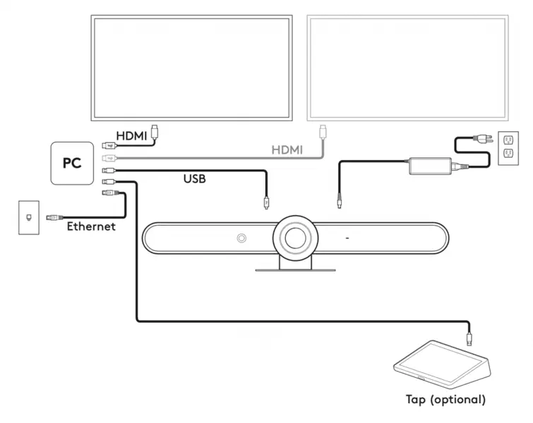 Connectez votre PC ou Mac directement à la Rally Bar, via USB, sans besoin de logiciel supplémentaire.
